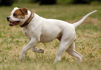 The American Bulldog, also known as the Old Country Bulldog, the Old Country White, the Old Time Bulldog, the Old English White, the English White, the White English, the Alabama and the Southern Bulldog, is known for its superb strength and fine character. It does not closely resemble the more familiar English Bulldog and is not yet recognized by the American Kennel Club. This breed is similar to the old, seventeenth-century bull-baiting dogs used to fight bulls for entertainment and supposedly to tenderize the meat for human consumption in Great Britain. The predecessors of this breed came to America in early colonial times, before the English Bulldog went through its transformations to become what that breed is today. This is a friendly, versatile dog that can do almost anything well. It is cherished as a hunting dog of large and small game, a guard dog, a guide dog and a beloved family companion. American Bulldogs form strong bonds with their people but if not properly socialized can be aggressive towards strangers and other animals.
