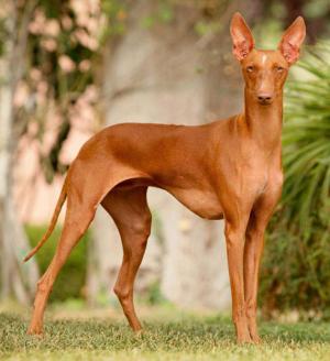 Sicilian Greyhound, may resemble a small Pharaoh Hound, but he’s a distinct breed of Italian origin, with his own color markings, tail shape, and triangle-shaped ears. He gets his name from Mount Etna, on the Italian island of Sicily, where his ancestors hunted rabbit and hare. He stalks silently — so much so that he can even sneak up on birds. Today, this rare breed is predominantly a family companion.