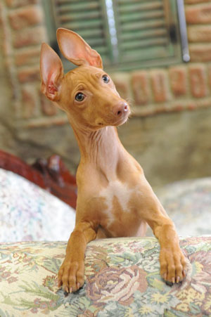 Cirnechi are high-energy animals that need quite a bit of regular exercise to keep them physically and mentally fit. They love taking long daily walks and having a chance to stretch their legs in safely-enclosed areas. It is important for Cirneco owners to have well-fenced yards, so that their dogs can run freely and burn off excess energy, which usually happens in short bursts. While they can be gregarious and playful, Cirnechi usually are calm and quiet, both indoors and out, as long as their exercise needs are met. They are great fans of toys of all sorts. A Cirneco can play with a single toy for hours, keeping it out of mischief. Cirnechi are active contestants in lure coursing and agility competitions. Participation in these and other canine sporting events provides a great opportunity to showcase the Cirneco’s athleticism, while at the same time giving him a chance to get physical exercise and canine socialization.