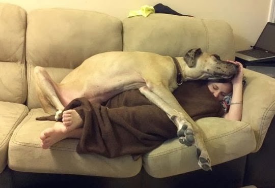 Some Danes wish they were lapdogs, and they’ll keep trying to get there even if you and your lap mysteriously keep moving.