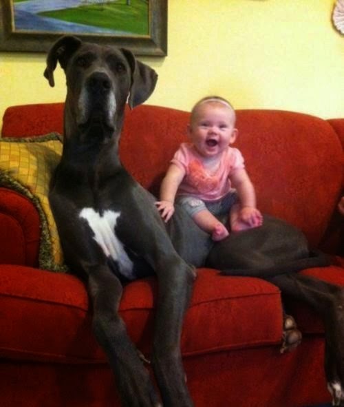 A Great Dane loves children and is gentle with them, especially when raised with them from puppyhood. Keep in mind he doesn’t have any idea how big he is compared to a small child, and so can accidentally knock them over quite easily.