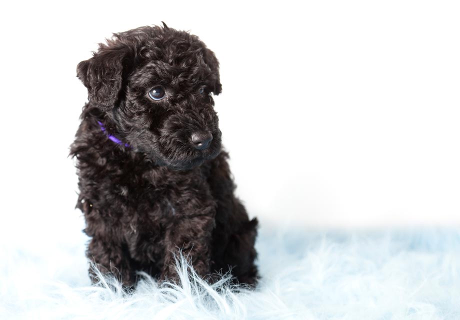 Kerry Blue Terrier puppies are born black. The coat should reach its mature color by the time the dog is 18 months old.