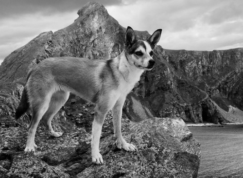 The breed has a long history. They are the most ancient of the Nordic dog breeds, scientific research indicates that the breed has been in existence since before the last Ice Age, surviving by eating fish and sea birds. It is thought that the Lundehund is actually a descendant of the primeval dog, Canis forus, rather than the domesticated dog breeds, Canis familiaris. The Lundehund was a valuable working animal, essential in hunting puffin birds along the Norwegian coast for food as well as the commercial export of puffin down from the Viking Age through the 16th and 17th centuries. Its flexibility and extra toes were ideal for hunting the birds in their inaccessible nesting locations on cliffs and in caves. Interest for the breed declined when new methods for hunting puffins were incorporated and a dog tax was created. Around 1900, they were only found in the isolated village of Mostad , Lofoten. The breed was nearly extinct around World War II when canine distemper struck Værøy and the surrounding islands. In 1963, the population was further decimated by another outbreak of distemper. This time, only six dogs survived, one on Værøy and five in southern Norway, Hamar. The latter five were from the same mother. This created a population bottleneck. Due to careful breeding with strict guidelines, there are now an estimated 1400 dogs in the world (2010), with around 600 of the population in Norway and ~350 in the United States.