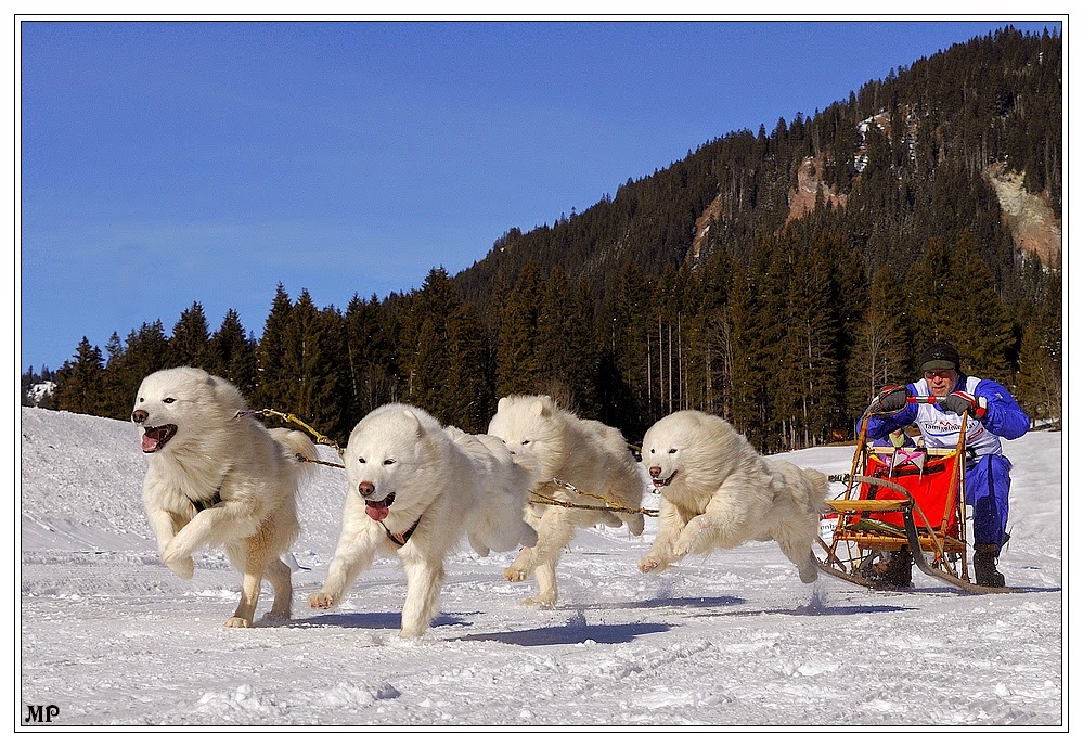 - Samoyeds serve as the sled dogs of Stone Fox in the book of the same name.